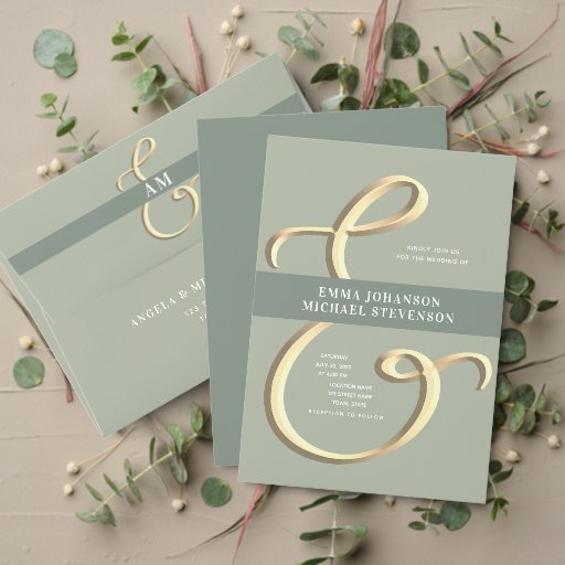 Ampersand Sage Green Wedding Invitation SuiteDiseñado por Yana Bor