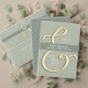 Sencillo, contemporáneo, minimalista programa de bodas verdes con caligrafía moderna y elegante ampersand de oro.