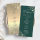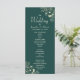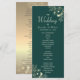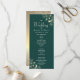 Adéntrese en un mundo de encanto atemporal y sofisticación con nuestro lujoso programa de ceremonia de boda verde esmeralda elegante. Infundido con bohemio chic y encanto vintage, delicadas flores doradas y elegante escritura caligráfica adornan cada detalle, prometiendo un día de encantamiento y belleza.