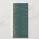 El borde izquierdo de este elegante y moderno programa de bodas presenta un diseño purpurina de imitación dorada. El texto del personalizable combina la escritura a mano de color dorado, las fuentes de copperplate y cursiva sobre un fondo verde oscuro.