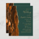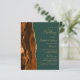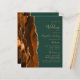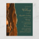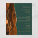El borde izquierdo de este elegante y moderno programa de bodas cuenta con un naranja quemado y una capa de acuarela rojiza bordeada por un falso purpurina de oro. El texto del personalizable combina la escritura a mano de color dorado con fuentes de copperplate en un fondo verde oscuro.