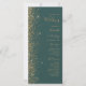 El borde izquierdo de este elegante programa de boda moderno presenta un diseño de brillo falso dorado. El texto personalizable combina escritura a mano de color dorado, fuentes copperplate e itálicas sobre un fondo verde oscuro.