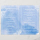 Una moderna acuarela abstracta salpicada de arrecifes de coral arrecife de coral azul aguamarina ceremonia de boda y un programa fiesta plegado que presenta una pintura acuarela pintada a mano salpicada de textura en tonos azul aguamarino, arrecife de coral en blanco y texto en blanco y gris. Este elegante y elegante diseño exótico casual de boda es un modelo de personalizable completamente perfecto para su boda de verano costero. Tendrás que doblarlo en el centro. Elija sólo este tipo de valor de papel a medida que se dobla bien. Tenga en cuenta que esta es sólo una imagen de acuarela con textura no real.