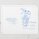 Una pareja de pájaros en línea, dibujo gráfico de un pájaro abierto colgando de un árbol primaveral floreciente con corazones. El moderno diseño boda de moda de moda forma parte del juego de boda romántico jaula de pájaro. tonos pastel azul y azul acuático sobre un fondo blanco. Edite este programa de bodas con su propio nombre, fechas, redacción de la ceremonia, asistentes a la fiesta de bodas y gracias. Un programa sencillo pero elegante simplemente reemplaza el texto de ejemplo con los detalles de la información del boda y dobla los programas a la mitad en el momento de la entrega. Dibujo y diseño único de Sarah Trett.