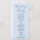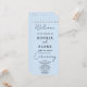 Presentamos nuestro etéreo Programa de Bodas Azules Ligeras, adornado con una celestial fila de estrellas de tiro suspendidas de plata alineadas delicadamente en la parte superior. Este encantador diseño está diseñado meticulosamente para las parejas que buscan temas celestes, estrellados o místicos, capturando perfectamente la esencia de una noche fascinante iluminada por las estrellas y maravilla celeste, ideal para los bodas nocturnos. En la parte delantera del programa, los nombres de la pareja, la importante fecha de boda, los detalles del lugar y la completa información de la ceremonia se muestran de forma elegante en un tranquilo telón de fondo azul claro. Al abrazar la sencillez y la elegancia, la mayoría del texto se presenta en un tipo de letra de bloque limpio y fácilmente legible. Añadiendo un toque de encanto, las palabras "Bienvenida", "Ceremonia" y "Fiesta de la Boda" están bellamente escritas en una fuente decorativa. Esta exquisita fuente de escritura confiere un aire de gracia y sofisticación, elevando el atractivo visual del programa. Atravesando la parte de atrás, bajo la hilera de cautivadoras estrellas de tiro de plata, se proporciona cuidadosamente una lista completa de los detalles de la fiesta de boda. El motivo de inspiración celeste realza el ambiente místico del programa, lo que lo convierte en una elección perfecta para las parejas que desean infundir a su boda fascinación celeste y encanto místico. Adaptado para los cautivados por la belleza celeste, nuestro Programa de Bodas Azules Ligeras con una fascinante hilera de estrellas suspendidas de tiro con rosa de oro le da un encanto etéreo a su celebración. Su elegante presentación y su encanto celestial lo convierten en una opción ideal para las parejas que desean evocar un ambiente encantador y estrellado en su día especial.