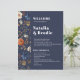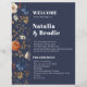Un bonito borde acuático pintado a mano con un estilo moderno de fuente y de melodía oscuro. Un oscuro y monótono diseño del país francés. Edite fácilmente la plantilla para adaptarla a su evento boda. Programa de Bohemia Bohemiana de Terracota Azul de la Marina.