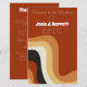 Este programa de bodas retro de los años 70 presenta líneas onduladas en tostado, marrón y naranja, que recuerdan a los 70 groovys y el estilo de vida hippie. Funky hoja de papel vintage con guión blanco al lado de las líneas curvadas abstractas. Groove junto con este divertido diseño de tono de tierra.