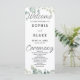Presentamos nuestro Programa de Bodas Blancas, adornado con un toque de elegancia de la naturaleza en la forma de un hermoso borde de vegetación natural en la parte superior e inferior. Esta encantadora elección de diseño simboliza el crecimiento eterno y el amor floreciente entre usted y su pareja, lo que lo convierte en una adición perfecta a su papel para el día de la boda. El inmaculado fondo blanco del programa exuda pureza, simplicidad y el comienzo de un nuevo capítulo en sus vidas. La adición del frondoso borde de vegetación aporta una sensación de frescura y vitalidad, infundiendo su programa de bodas con un toque natural de encanto y sofisticación. La combinación de blanco y verde crea una estética atemporal y clásica, adaptada a una variedad de estilos y temáticas bodas. Los detalles del programa se presentan meticulosamente en negro y gris clásico, utilizando un sencillo tipo de letra en bloque que garantiza una legibilidad clara y fácil para sus huéspedes. Esta elección de tipo de letra mantiene un aspecto limpio y elegante, permitiendo a sus invitados seguir los procedimientos de la ceremonia sin esfuerzo. Para agregar un toque de romance y refinamiento, las palabras "Bienvenida", "Ceremonia" y "Fiesta de bodas" se representan delicadamente en un tipo de letra de escritura decorativa bonito. Este tipo de letra de guión eleva estos elementos clave, infundiendo al programa un sentido de gracia y elegancia. El tipo de letra del guión sirve como punto focal visual, mejorando la belleza general del programa y añadiendo un toque de encanto personalizado a su día de boda. La portada trasera del programa incluye una lista de los miembros de la fiesta de boda, presentada en el mismo tipo de letra de guión exquisito que se utiliza en la portada. Este detalle atento no sólo reconoce los importantes roles que desempeñan sus seres queridos, sino que también añade un toque sincero y personalizado al programa, convirtiéndolo en un querido placer para usted y sus invitados. Nuestro Programa de Bodas Blancas con Frontera Verde Natural es más que una guía práctica, es una obra de arte que captura la esencia de tu historia de amor. La combinación del blanco inmaculado con el diseño de la vegetación exuberante crea un ambiente elegante y atractivo desde el punto de vista visual. Este programa de bodas sirve como una hermosa representación de tu amor y compromiso, lo que lo convierte en una adición significativa y memorable a tu día de bodas.