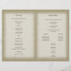 Burlap y el programa de bodas con diseño impreso de arco morado para complementar invitaciones. texto personalizar según sea necesario.