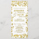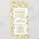 Este popular programa de bodas parece moderno y divertido con un confetti dorado bailando sobre la carta. El fondo blanco se puede cambiar fácilmente a cualquier color que quieras. También puede cambiar los colores de fuente y fuente para hacer el programa perfecto que celebra su día más especial con estilo. ¡Que tengas un evento maravilloso!