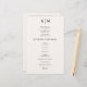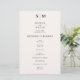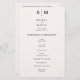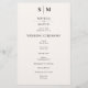 Haga que su día de boda sea inolvidable con esta elegante tarjeta de programa de boda. En la parte superior se muestra el monograma de la pareja, añadiendo un toque personal y refinado. A continuación, el itinerario de la ceremonia se presenta en un estilo de letra serif muy bien elaborado, guiando a sus invitados en cada momento especial. Por la espalda, honre a los miembros de su fiesta de bodas e incluya un mensaje de agradecimiento sincero para mostrar su agradecimiento. Ideal para bodas elegantes, esta tarjeta de programa le da un toque de lujo a su celebración.