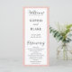 Presentamos el programa de bodas perfecto para la pareja moderna que quiere añadir un toque de elegancia a la moda a su día especial. Este programa cuenta con un elegante borde de manchas marrones, amarillas y blancas a ambos lados, lo que lo convierte en una gran elección para los amantes de los diseños minimalistas, modernos, boho o coloridos. En la parte delantera del programa se incluyen los nombres de la pareja, la fecha boda, la ciudad y el estado, junto con un orden claro y conciso de los acontecimientos para la ceremonia. En la parte trasera del programa se muestra la fiesta de bodas, lo que facilita a los huéspedes la identificación y la conexión con la fiesta de novias. El texto principal del programa se presenta en un sencillo tipo de letra en bloque negro que es fácil de leer, mientras que las palabras "Bienvenida", "Ceremonia" y "Fiesta de Bodas" se muestran en un tipo de letra de escritura negro moderno, agregando un toque extra de elegancia y estilo. Los nombres de la pareja aparecen en letras negras en negrita, con un espacio entre letras que los hace destacar, asegurándose de que sus nombres sean frontales y céntricos. En general, este moderno y divertido programa de bodas es la elección perfecta para las parejas que desean añadir un toque de elegancia y estilo a su gran día, manteniendo las cosas sencillas y fáciles de seguir. Con su elegante y elegante frontera y su información clara y concisa, este programa es un éxito para los huéspedes y una excelente manera de mostrar la personalidad y el estilo únicos de la pareja.