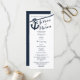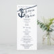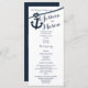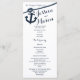 Diseño náutico de ancla y cuerda imprimió programas de boda con tarjeta de rack en texto azul marino oscuro.