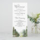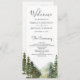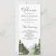 Elegante programa de bodas con hermosas montañas y pinos con tipografía moderna.