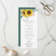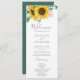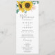 Este rústico programa de bodas con eucaliptos de girasol es perfecto para una boda campestre. El diseño floral bohemio incluye girasoles amarillos, flores rosas y un eucalipto verde cazador en la acuarela con un elegante y moderno toque boho. Incluya el nombre de la novia y el novio, la fecha y ubicación del boda, el mensaje de agradecimiento, el orden de servicio, la fiesta de novias y un monumento opcional "en memoria amorosa".
