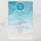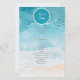 Programa de bodas de fondo Beach, Ocean Watercolor Background Boding Este impresionante programa de bodas capta la serena belleza de una temática costera con su fondo acuático en suaves tonos azules y beige, que evocan el océano y las playas de arena. El diseño tiene un marco circular con delicados bordes blancos, lo que da un suave efecto a las olas que golpean la orilla. Los nombres de la pareja están elegantemente escritos en un tipo de letra de guión que fluye, agregando un toque romántico, mientras que los detalles se muestran en un tipo de letra serif limpio en un cálido tono dorado. Perfecto para una boda en la playa o en el destino, esta invitación le ofrece tranquilidad y elegancia, invitando a los huéspedes a unirse a una celebración llena de amor y belleza natural. F008