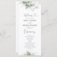 Programa de Boda de Hojas de Eucalyptus. Esta elegante y elegante invitación a la boda incluye una hermosa acuarela pintada a mano Eucalyptus Leaf Greenery. Buscar elementos coincidentes en la colección de vegetación de hojas de eucalipto de color de agua.