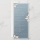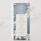 Elegante programa de bodas de invierno, con flores nítidas y blancas sobre un fondo de gradiente azul helado.
