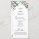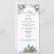 Programa de Bodas de Invierno con elegante caligrafía y diseño acuarela. Este diseño cuenta con bayas de invierno, humedales, pinos y vegetación perenne. Una hermosa elección para una boda de invierno o un boda de navidades.