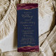 Este elegante y moderno programa de bodas cuenta con bordes de ágata bordeados con purpurina de imitación de oro. El texto aparece en elegantes letras de color dorado y fuentes de copperplate sobre un fondo azul marino oscuro.