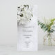 Flores de flores blancas rallando en un vestido blanco boda. Un diseño femenino de bonito perfecto para matrimonios contemporáneos tradicionales o modernos, o matrimonios de invierno. Puede ser fácilmente personalizado con los nombres de novias y novios y otros invitados de novias que escriben en las plantillas para crear su propia moda lujoso programa de matrimonio profesional para sus eventos especiales y celebraciones. Visite la TIENDA PERSONALIZED_ BODAS para obtener conjuntos de suites boda coordinados.