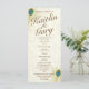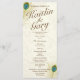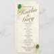 Elegante diseño de plumas de pavo real dorado estampado en cremallera programas de boda con texto marrón.