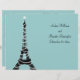 Las brillantes luces de inflexión acentúan la Torre Eiffel en este programa de bodas de inspiración parisina. Se imprime en el papel de volante de peso ligero, de modo que sea fácil doblarlo a la mitad.