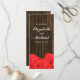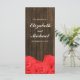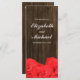 Programa de bodas de temática rural con rosas rojas sobre un fondo rústico de madera oscura de granero. Fácilmente personalizar para su evento.
