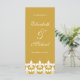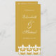 Diseño de un programa de bodas con patrón de flur de lis dorado y blanco. Personaliza fácilmente tu evento.