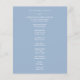 Este programa de bodas en la playa cuenta con caballitos de mar de color agua en tonos azul polvoriento. Los nombres de novias y novios y la cronología del programa de bodas están establecidos como tipografía clásica de sans. El orden procesional del boda se invierte a un azul sólido. Este diseño de doble cara es una opción moderna para los bodas acuáticos y de playa. Arte y diseño de Victoria Grigaliunas de Do Tell A Belle. Para obtener más información sobre este tema del boda, visite www.zazzle.com/dotellabelle