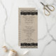 Un encaje negro muy bien ilustrado decora este programa de bodas de color burlap.