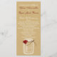 rosa roja en un frasco rústico y chic de albañil en un encaje blanco FAUX y programas de bodas en la parte posterior de la burlap. Elegante y elegante para una boda de campo o un boda de granja, ideal para cualquier boda al aire libre también. También hay productos de coincidencia disponibles.