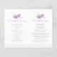 Dos simples y dobles conos de pino dibujados en púrpura con agujas de pino gris en un programa de bodas de fondo blanco. Parte de los conos de pino de bodas de invierno están parados. tonos bonito violeta, blanco y gris. Edite este programa de bodas con su propio nombre, fechas, redacción de la ceremonia, asistentes a la fiesta de bodas y gracias . Un programa sencillo pero elegante simplemente reemplaza el texto de ejemplo con los detalles de la información del boda y dobla los programas a la mitad en el momento de la entrega. Programa de ceremonias bodas de naturaleza moderna y romántica. Dibujo y diseño de Sarah Trett.