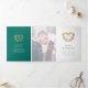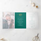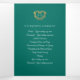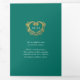 Programa de bodas en monograma cardíaco con 2 fotos de página completa. Personalice este programa de bodas triples con sus propios detalles de la ceremonia de boda. Diseño decorativo del corazón dorado en torno a sus propias iniciales monográficas en verde oscuro y oro en blanco. Hay disponibles otros colores y elementos bodas coincidentes. © Dibujo y diseño original de la hoja de Sarah Trett para www.mylittleedenweddings.com en Zazzle.