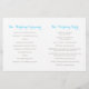 Arte de acuarela de doble cara simple estilo de una sola flor silvestre en un programa de bodas de fondo blanco. Parte del conjunto de bodas de acuarela de arte de flores silvestres. tonos azul y gris bonito. Edite este programa de bodas con su propio nombre, fechas, redacción de la ceremonia, asistentes a la fiesta de bodas y gracias . Un programa sencillo pero elegante simplemente reemplaza el texto de ejemplo con los detalles de la información del boda y dobla los programas a la mitad en el momento de la entrega. TENGA EN CUENTA que debe asegurarse de que el texto no es más largo que el texto de la plantilla, ya que puede ejecutarse sobre el plegado de la página. Programa de ceremonias bodas modernas y románticas. Pintura y diseño de Sarah Trett.