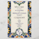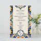 Azulejo azul portugués Talavera vintage tarjetas de programa de boda mexicano, decoración mediterránea Talavera patrón de baldosas programa de boda estilo Hacienda boda papelería