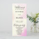 Presentamos el programa de bodas perfecto para una pareja moderna y divertida. Este programa presenta un diseño vibrante y lúdico con un fondo de color rosa, amarillo y blanco, con estrellas y luces brillantes. Los espacios blancos de diseño aportan un toque limpio y minimalista que equilibra perfectamente los elementos coloridos. En la parte delantera del programa encontrarás los nombres de las parejas, la fecha boda, la ciudad y el estado, y la orden de la ceremonia, todo presentado de forma elegante con un sencillo tipo de letra negro. Mientras tanto, las palabras "Bienvenidos", "Ceremonia" y "Fiesta de bodas" aparecen en un hermoso guión moderno negro, añadiendo un toque de romance al diseño general. En la parte trasera del programa se muestra la fiesta de bodas, por lo que sus invitados pueden identificar fácilmente a todas las personas importantes que forman parte de su día especial. Los nombres de las parejas también se resaltan en un audaz tipo de letra negro y simple, con el espacio entre letras, para que se destaquen y tengan una impresión duradera en sus huéspedes. Ya sea que planee un boda inspirado en el boho o simplemente busque un toque colorido y moderno, este programa nupcial es la elección perfecta. Entonces, ¿por qué esperar? ¡Pida ahora y haga su día especial verdaderamente inolvidable!