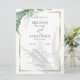 Programa de casamiento acuarela | Asegúrate de que tus invitados sepan lo que está pasando y cuándo esperar qué evento - al dorso hay una lista de toda la fiesta de bodas. Elegantes hojas verdes tropicales modernas que rodean un marco geométrico dorado en las esquinas diagonales. Invertir es un color coordinado de cortesía. texto personalizar, estilo de fuente, color y tamaño. Obra de arte original creada para el BarefootBride™ por © WhimsicalArtwork™. Esto forma parte de una completa suite de estilo Boda con boda, ducha para bebés y otras papelería de eventos.