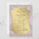 Este programa de bodas combina el encanto romántico con la elegancia atemporal, con un suave fondo rosa realzado con adornos de damascos dorados. Los detalles del programa se muestran en un panel de oro radiante, creando un contraste elegante que resalta tanto la belleza como la sofisticación. La paleta de colores dorado y rosa añade un estilo lujoso y romántico, perfecto para celebrar bodas de manera elegante e inolvidable.