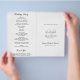 Elegante programa de bodas plegadas en blanco y negro (impreso en papel delgado de volante que se despliega) con un diseño sencillo y mínimo con un gran ampersor y detrás de los nombres de la novia y el novio en el frente. En el interior se incluye una redacción tradicional para un boda católico, pero la redacción puede actualizarse para un boda no católico. Una elección clásica perfecta para un boda formal.