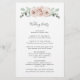 Elegante floral barato volante del programa de bodas con una acuarela pintada de color rosa rosa polvoriento y verde en tonos verde sabio. La parte delantera tiene tu orden de ceremonia y la parte trasera tiene tu fiesta de boda. Este encantador programa de temática botánica es perfecto para un boda de primavera o verano. Estos programas de boda baratos se imprimen en hojas de papel para una opción asequible.