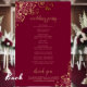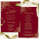 Estos programas de bodas son elegantes y de buen gusto, pero siguen siendo asequibles. El diseño está decorado con cuadros de Relieve metalizado de imitación dorada con textos dorados sobre un fondo burdeos, marrón o rojo vitivinícola. La tipografía incluye caligrafía de escritura de encaje, y hay espacio para detalles de la ceremonia, la fiesta de las novias y un breve agradecimiento.