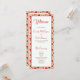 Añade un toque de elegancia vintage a tu día de bodas con este programa de boda floral de clavel rojo. Este diseño, con flores rojas clásicas y una refinada frontera botánica, es perfecto para bodas románticos, tradicionales o con temática de jardín. Úsalo para destacar tu horario de ceremonia, fiesta de boda y mensajes especiales. Una pieza muy bien coordinada para completar su suite boda floral, totalmente editable para adaptarse a su celebración. Si desea cambiar el estilo de letra, color o ubicación del texto, haga clic en el botón "Personalizar más adelante".