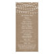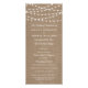 Sencillo pero elegante, las luces de cuerda de la colección rústica de bodas burlap es un diseño impresionante con hermosas luces de cuerdas blancas colgadas en un fondo de efecto burlap, perfecto para cualquier celebración rústica boda. Estos programas pueden ser personalizados para su ocasión especial y harían el pedido perfecto de servicio para su boda, ducha de novias, fiesta de compromiso, fiesta de cumpleaños y muchas otras ocasiones especiales. Agregue la redacción de su personalizado a este diseño utilizando los cuadros "Editar esta plantilla de diseño" situados en la parte derecha del elemento, o haga clic en el botón azul "Personalizar" para organizar el texto, cambiar los tipos de letra y los colores y añadir información o imágenes adicionales a este diseño. VER ELEMENTOS DE COINCIDENCIA PARA ESTA COLECCIÓN