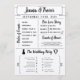 Este divertido programa de bodas incluye varios íconos dibujados a mano y varias oportunidades para ser creativos en la forma en que le enseñas a tus invitados sobre tus personalidades y tu relación.