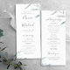 Moderna moda minimalista acuarela de diseño vegetal botánico de color azul polvoriento, sencillo y elegante con nombres de caligrafía, excelentes tarjetas de programa de bodas redondas para boda moderno, boda rústico y bodas botánicas en invierno. Ver todas las piezas coincidentes de la colección