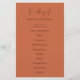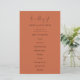 Programa de Boda Terracota de Texto Elegante Presupuestario. Tamaño de 5,5" x 8,5" a un precio reducido, en un elegante stock de 110 lb LINEN - para un ambiente de lujo a gran valor, es perfecto para programas, así como invitaciones y menús, etc. Esta alternativa de tamaño de presupuesto también está disponible en otras opciones de papel. El material de la tarjeta SEMI-GLOSS de 110 lb es aproximadamente del mismo grosor que una postal, por lo que también funciona bien para las invitaciones. El papel FELT de 100 libras es de color buff, NO blanco, por lo que añade un toque rústico. El material de papel MATTE 80lb es blanco brillante, para impresión crujiente, ideal para menús y programas, mientras que el papel SATIN de 80 libras es delgado y liviano, ideal para gabinetes. TENGA EN CUENTA QUE LOS ENVELOPES OPCIONALES SON UN POCO MÁS GRANDES DE TAMAÑO A 6.75" x 9" aprox. Un diseño tipográfico simple para sus programas de boda. El encabezado principal se encuentra en un guión elegante de estilo de escritura a mano y el resto del texto que puede personalizar fácilmente. Puede cambiar el texto y los colores de fondo si desea coincidir con su tema de color boda a través de la opción Personalizar Más adelante, así como otras modificaciones que puede necesitar. Si necesitas ayuda para editar este diseño, por favor envíame un mensaje.