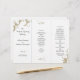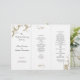Florece el programa de bodas blancas triplicado con hojas de oro. Personalizar con texto negro en tres secciones, que serán la parte delantera, el orden de la ceremonia y las fiestas de boda. Luego doblar el estilo acordeón / z-pliegue / triple, después de la compra. Por favor NOTA: cambiar el tipo de papel puede dificultar el proceso.