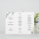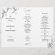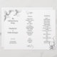 La plantilla de programa de bodas blanca triple con hojas de color gris plateado florece y el texto para coincidir. Personalizar tres secciones con información de la ceremonia y doblar el estilo acordeón.