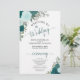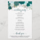 Estos programas de bodas son elegantes y de buen gusto, pero siguen siendo asequibles. El diseño se compone de un conjunto de rosas acuáticos pintados a mano en tonos verde azulados, turquesa, aqua y cian, rodeados de hojas de eucalipto y follaje de jardín. La tipografía incluye caligrafía de escritura de encaje, y hay espacio para detalles de la ceremonia, la fiesta de las novias y un breve agradecimiento.